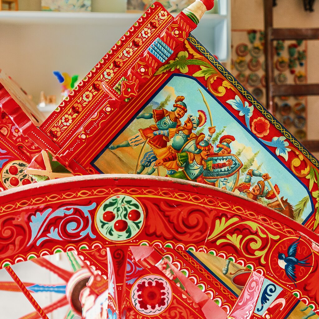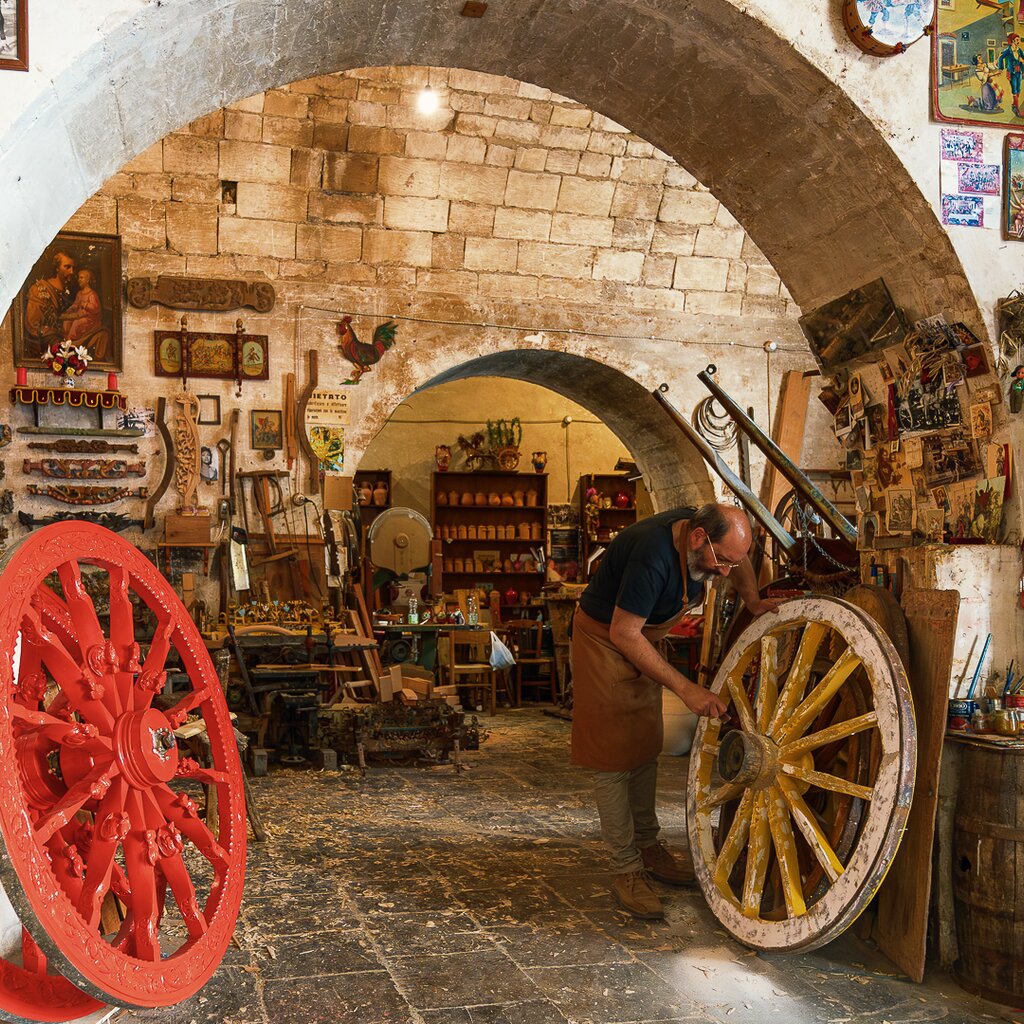 Its goal is to preserve this ancient tradition. Damiano Rotella and Biagio Castilletti are currently the only artisans in Italy specialising in painting and restoring Sicilian carts and welcome visitors to this creative hub in the search for the traditions, art and beauty of Sicily.