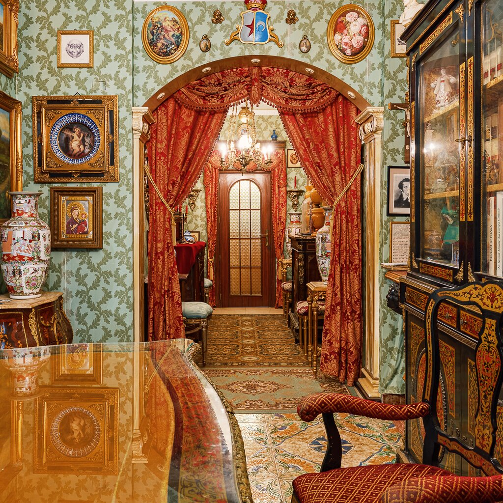 Inspired by the seventeenth century Cabinets of Curiosities, the organist Salvatore Appiano has spent his entire life collecting furniture and furnishings from different eras, particularly the baroque, transforming every room on every floor of his house into a chamber of art.