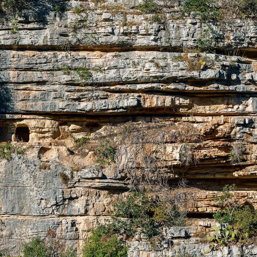 It it is full of typical Mediterranean plants, most notably tall oak trees and holm oaks. The reserve is very varied, alternating between flat lands and sheer cliffs overhanging deep gorges which, in prehistoric times, were also used by people for shelter.