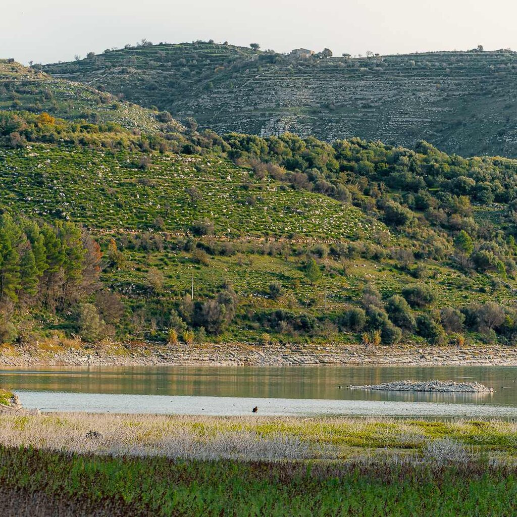Lake Santa Rosalia is in the heart of the plateau above Ragusa, a man-made lack formed by a dam that collects water for irrigating the lands of the plains below.