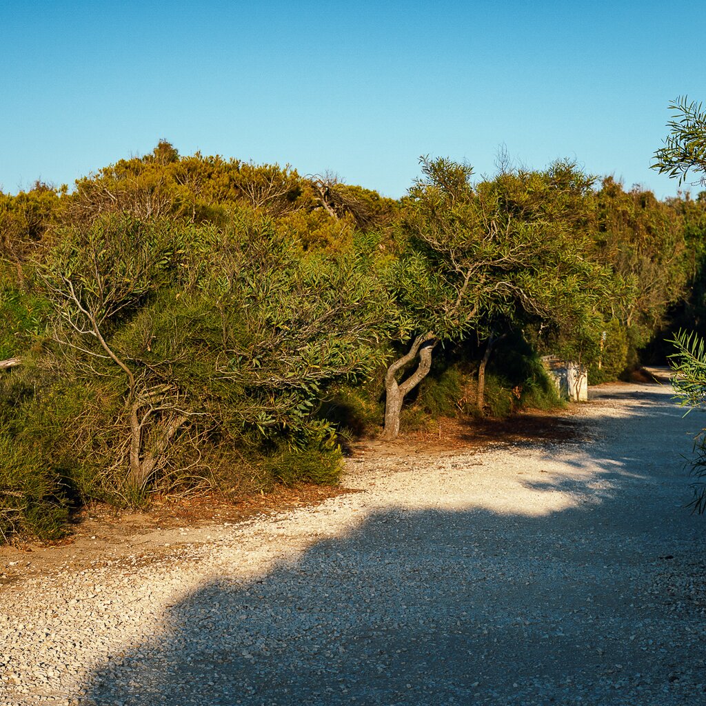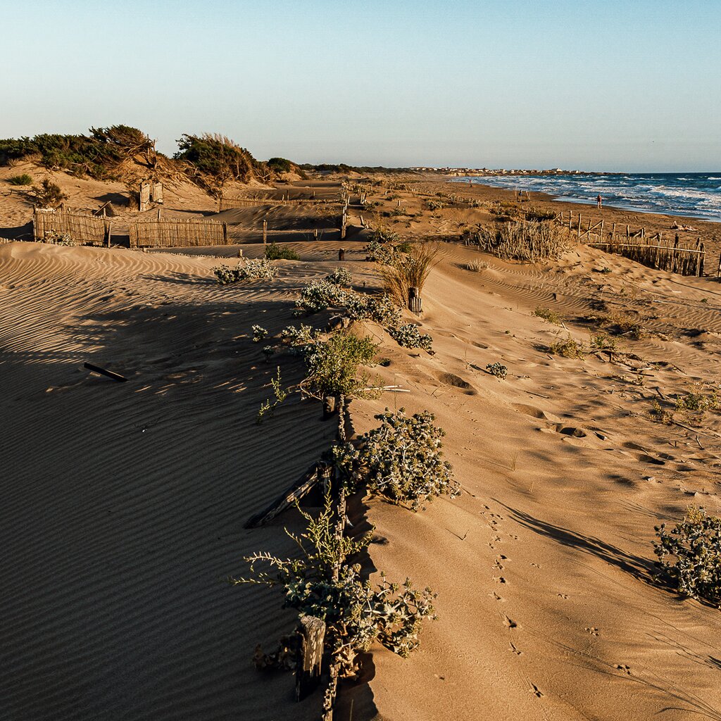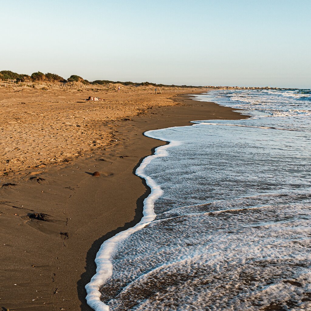 Around 150 hectares of eucalyptus trees, cypresses, holm oaks and oaks provide shade, before a dip or a walk along the large sandy shore, surrounded by dunes, in search of shells.