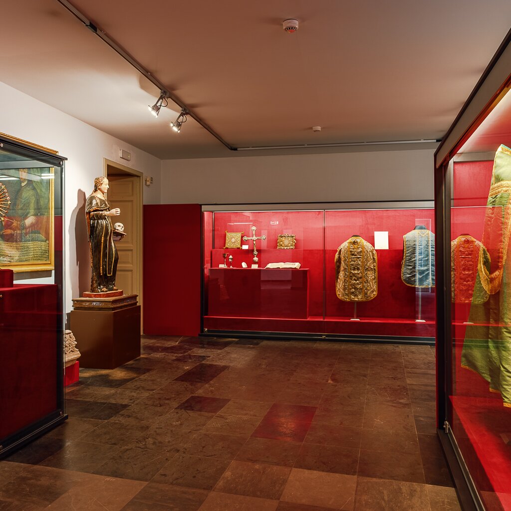 Il percorso si snoda tra sette sale espositive in cui si conservano reliquari di santi, venerati nel ragusano, molte oreficerie, paramenti liturgici, gioielli episcopali e testi liturgici, nonché tele e statue.