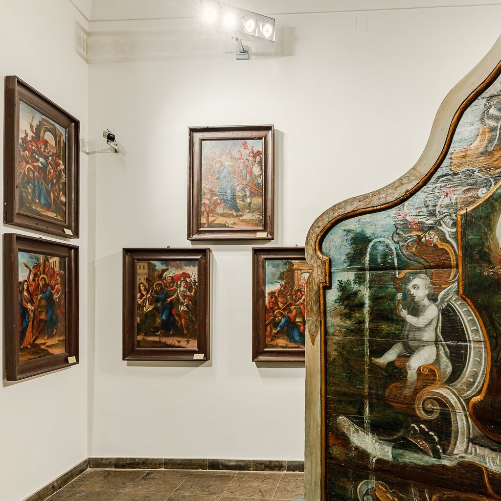 Nella sesta sala, dedicata interamente al culto mariano, si espone il pregiato stendardo processionale di fine Ottocento, appartenente alla Confraternita ragusana del SS.mo Cuore di Maria della Medaglia.